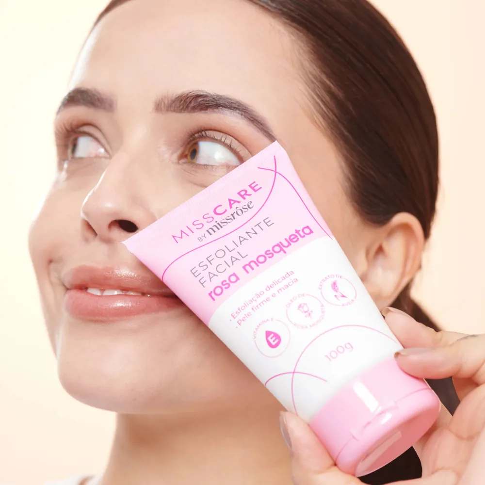Descubra o poder da esfoliação suave com o Esfoliante Facial Rosa Mosqueta Miss Care by Miss Rôse! Enriquecido com Vitamina E, Óleo de Rosa Mosqueta e Extrato de Aveia, remove impurezas delicadamente enquanto melhora a firmeza e a textura da pele. Proporciona uma pele renovada, macia e radiante em poucos minutos.
