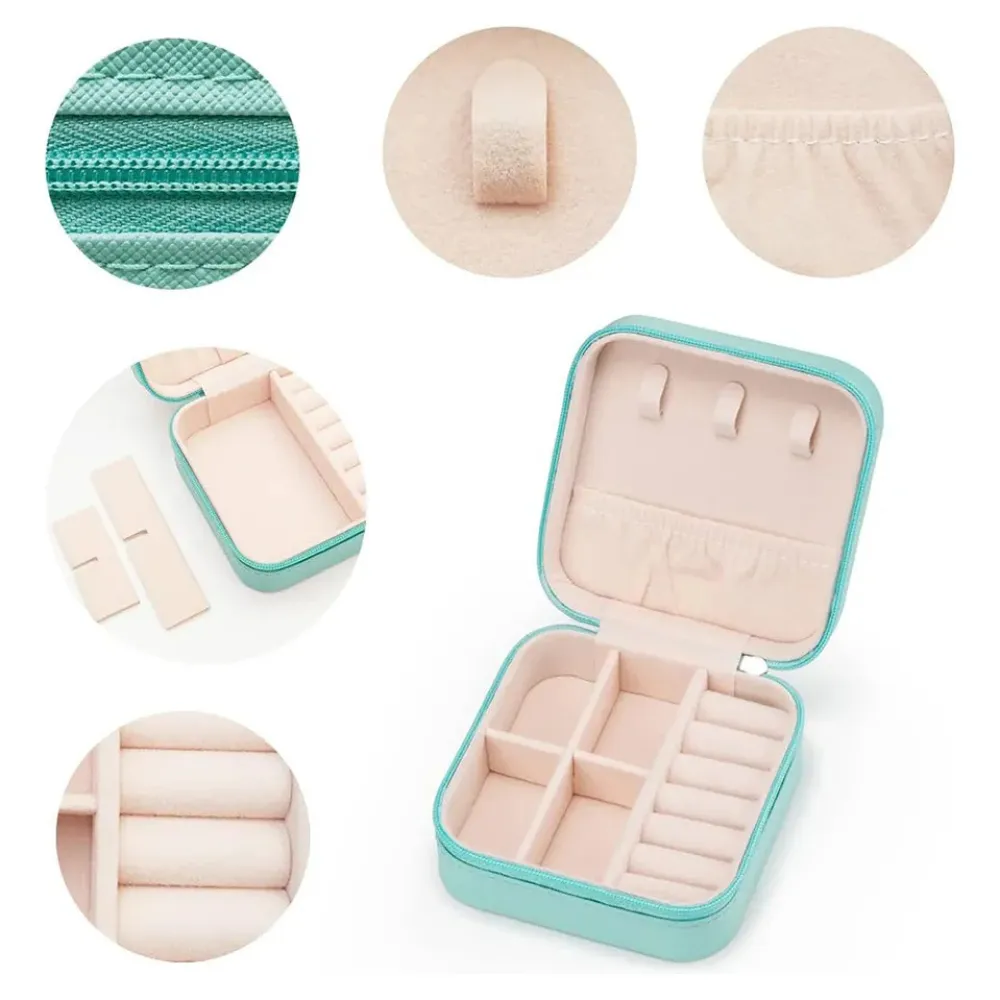 Mini Porta Joias Organizador Portátil Com Zíper Compacto Azul Tiffany